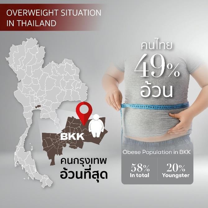 สำหรับประเทศไทย รายงานจากระบบคลังข้อมูลด้านการแพทย์และสุขภาพ กระทรวงสาธารณสุข ในการติดตามเฝ้าระวังภาวะเริ่มอ้วนและอ้วนนั้น ในปี พ.ศ. 2567 ที่ผ่านมา ประชากรไทยมีปัญหาน้ำหนักเกินและอ้วนมากถึง 49.0% ในขณะที่ กรุงเทพมหานครมีอัตราความชุกของโรคอ้วนอยู่ร้อยละ 58 และจำนวนเด็กมากกว่าร้อยละ 20 มีภาวะน้ำหนักเกินหรือเป็นโรคอ้วน