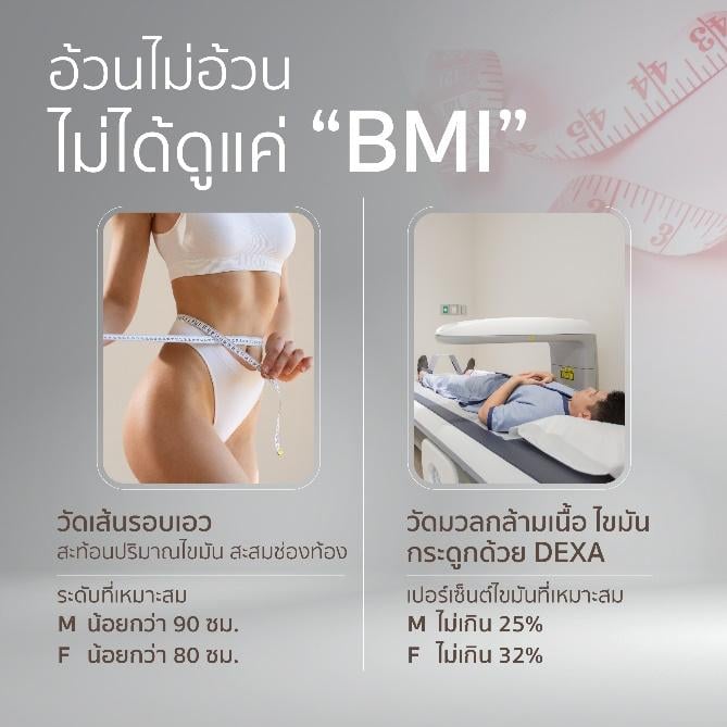 “การดู BMI เพียงอย่างเดียว อาจทำให้เรามองเห็นจำนวนผู้ที่มีไขมันสะสมเกินมาตรฐานต่ำกว่าความเป็นจริงได้” นายแพทย์ตนุพล อธิบายเพิ่มเติม