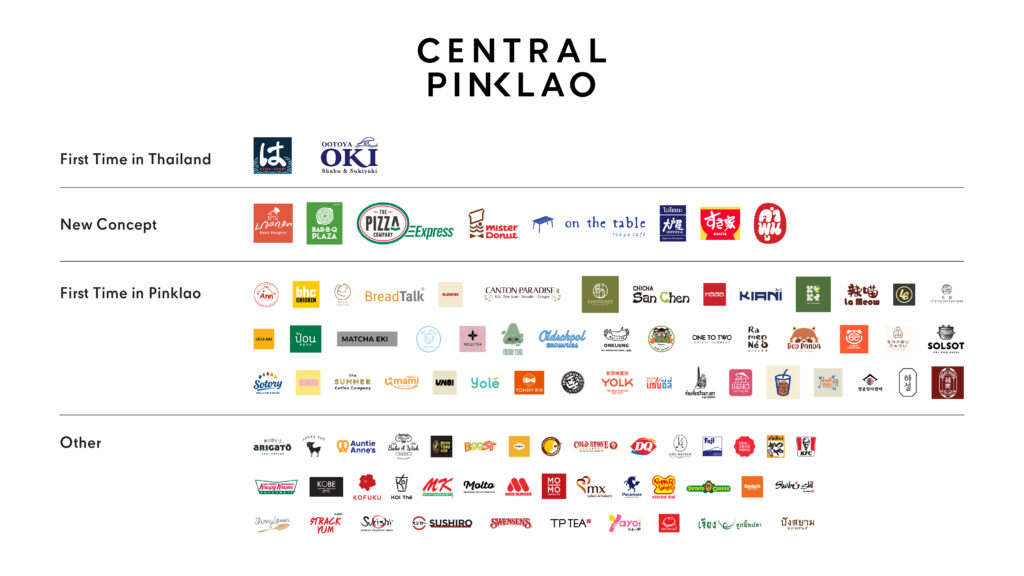 รวมถึงร้านดังที่เราคุ้นเคยกันดี แต่มากับคอนเซปต์ใหม่อย่าง BarBQ Plaza, Ootoya Tokusen, On the table, The Pizza Company Express, Mister Donut, คำพูน และบ้านบางกอก โดยจะเสิร์ฟเมนูที่มีแค่เซ็นทรัล ปิ่นเกล้าที่เดียว