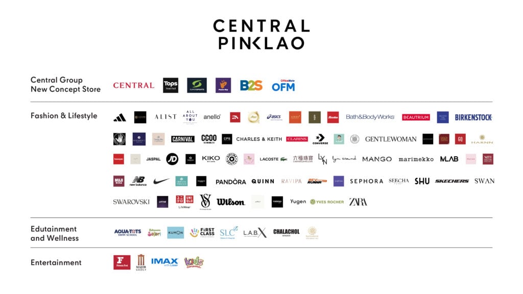 นอกจากนั้น เพราะอยากจะคงฐานลูกค้าเดิมสุดแกร่งอย่าง คนในย่านและกลุ่มครอบครัว รวมถึงดึงดูดลูกค้าใหม่ในกลุ่มคนรุ่นใหม่ (Young Gen) และกลุ่มมั่งคั่งใหม่ (New Wealth) เซ็นทรัลจึงเลือกแบรนด์แม่เหล็กมากว่า 500 แบรนด์ครอบคลุมทั้งแฟชัน ไลฟ์สไตล์ สุขภาพ ความงาม เทคโนโลยี และสถาบันการศึกษา โดยกว่า 150 แบรนด์ เป็นแบรนด์ฮิตเทรนด์ใหม่ ตามลิสต์ในภาพใต้นี้เลย