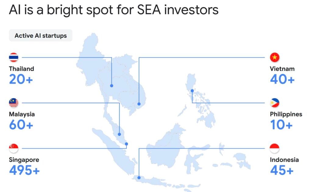 แต่หนึ่งในประเด็นที่น่าสนใจจากรายงานนี้คือการลงทุนในสตาร์ตอัปด้าน AI ใน SEA ซึ่งปีที่ผ่านมา มีสตาร์ตอัปด้าน AI มากกว่า 680 รายใน SEA ซึ่งสามารถดึงดูดเงินลงทุนจากทั่วโลกได้กว่า 2.3 พันล้านดอลลาร์สหรัฐฯ หรือราว (7.3 หมื่นล้านบาท)