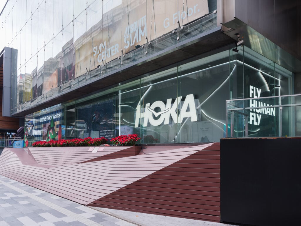 การเปิดร้านที่ Siam Center พร้อมขึ้นป้ายบน Facade หน้าบันได Siam Center มีความสำคัญที่ยิ่งใหญ่กว่าแค่เรื่องยอดขาย แต่เป็นหมุดหมายที่ตอกย้ำความสำเร็จของแบรนด์ HOKA ในประเทศไทย