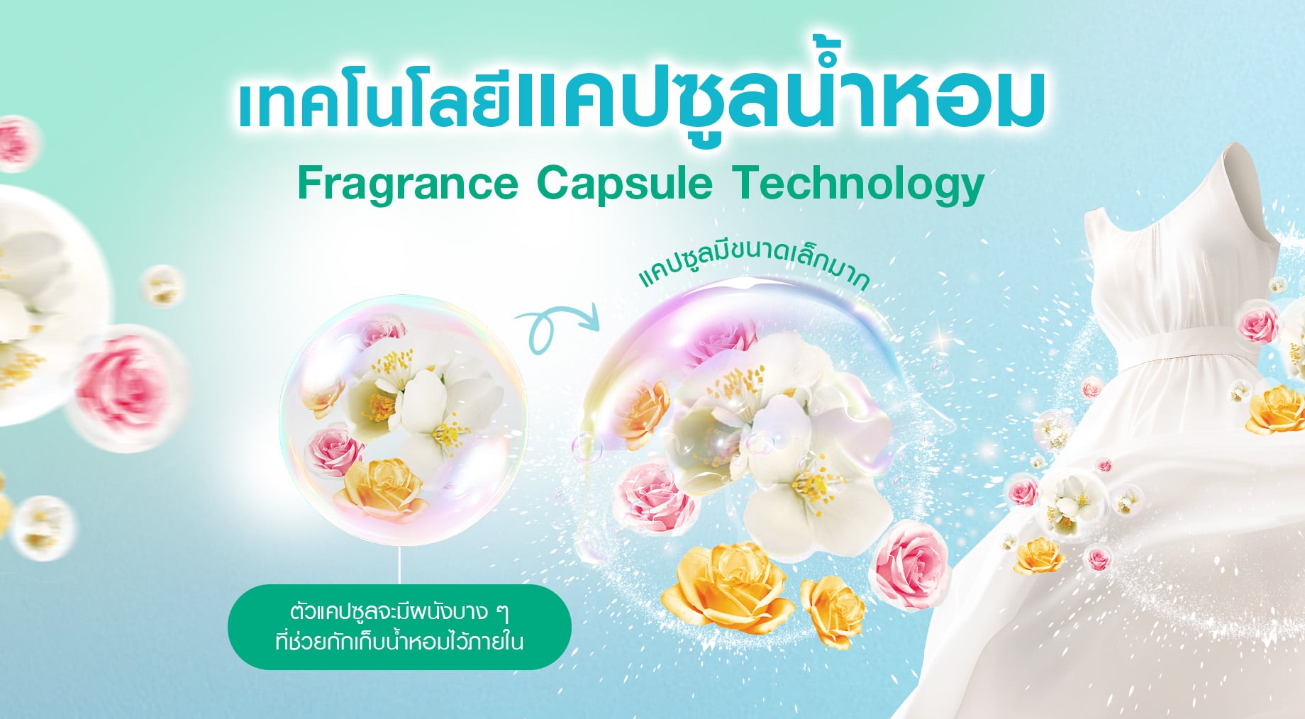 เทคโนโลยีแคปซูลน้ำหอม (Fragrance Capsule Technology) เป็นนวัตกรรมที่ใช้ไมโครแคปซูล (Microcapsule) กักเก็บน้ำหอมไว้ภายในแคปซูลขนาดเล็กที่เคลือบอยู่บนเส้นใยผ้าหลังการซัก เมื่อเกิดการเสียดสีหรือการเคลื่อนไหวของเสื้อผ้า เช่น การเดิน การยืดตัว การโอบกอด หรือการตบเสื้อเบา ๆ แคปซูลจะแตกตัวและปล่อยกลิ่นหอมออกมา เป็นการช่วยปล่อยกลิ่นแบบค่อยเป็นค่อยไป ทำให้กลิ่นติดทนนาน และช่วยให้เสื้อผ้ามีกลิ่นหอมระหว่างวัน ด้วยเทคโนโลยีแคปซูลน้ำหอมของแอทแทค ทำให้ผ้าหอมยาวนานถึง 45 วัน และนอกจากด้านความหอมแล้ว ผลิตภัณฑ์แอทแทคยังมีจุดเด่นด้านการขจัดคราบหนักได้ง่ายในขั้นตอนเดียว ไม่ต้องแช่ ไม่ต้องขยี้ ช่วยให้การซักผ้าเป็นเรื่องสะดวกและรวดเร็วยิ่งขึ้น