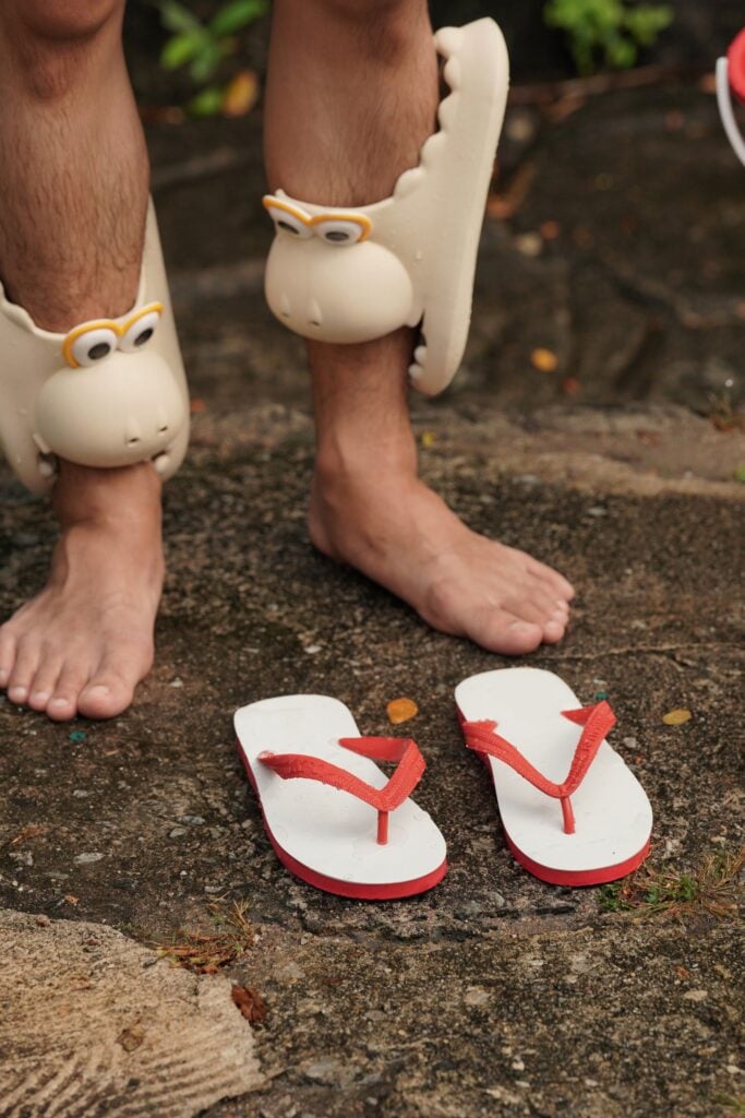 แก้เพนพ้อยท์เรื่อง ‘รองเท้ากินขา’ ที่หมายถึงรองเท้าแตะสวบเท้าหรือรองเท้าแตะเลื่อนหลุดจากเท้าเข้าไปอยู่ตรงขา อันเป็นปัญหาของคนชอบเล่นน้ำสงกรานต์