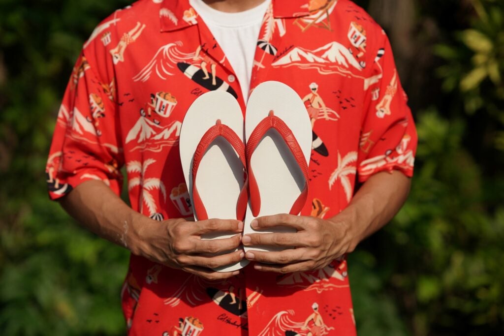 สำหรับ KFC เราเชื่อว่าการทำการตลาดที่ดี คือการหยิบเรื่องเล็ก ๆ แบบนี้มาคิดต่อให้ใหญ่ สนุกให้สุด และต้องใช้งานได้จริง จึงเป็นที่มาของ ‘รองเท้าแตะผู้พันขี่ช้าง’ ไอเท็มพิเศษรับสงกรานต์ ที่ออกแบบมาเพื่อให้คนไทยเล่นน้ำได้เต็มที่ เดินได้สบาย ไม่ต้องกังวลเรื่องรองเท้ากัด
