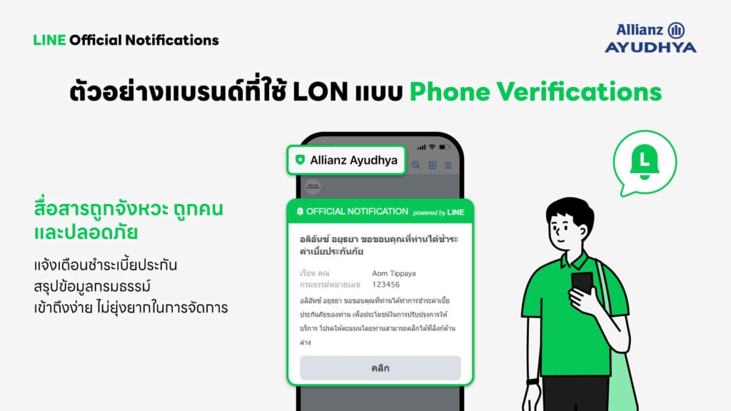 LINE Official Notifications (LON) คือโซลูชันการส่งข้อความแจ้งเตือนสำคัญผ่าน LINE Official Account ที่เข้ามาสร้างมาตรฐานใหม่ด้านความน่าเชื่อถือในการสื่อสารระหว่างแบรนด์กับลูกค้า และการมาของ LON รูปแบบใหม่ “Non-Phone Verification” กำลังเป็นกุญแจสำคัญที่ปลดล็อกโอกาสทางธุรกิจ เพิ่มโอกาสการเข้าถึงลูกค้าให้กับหลากหลายองค์กร