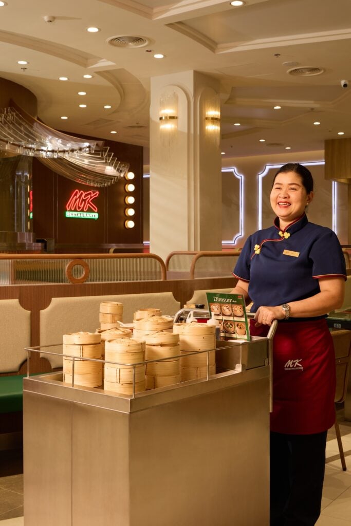 MK ทำสาขาเซ็นทรัลลาดพร้าวใหม่ ให้กลายเป็น ‘MK ย้อนยุค’ หม้อสุกี้-จานชาม-ชุดพนักงานลายเดิม ใช้เมนูกระดาษ สั่งอาหารผ่านคนได้ มีตู้เข็นติ่มซำด้วย
