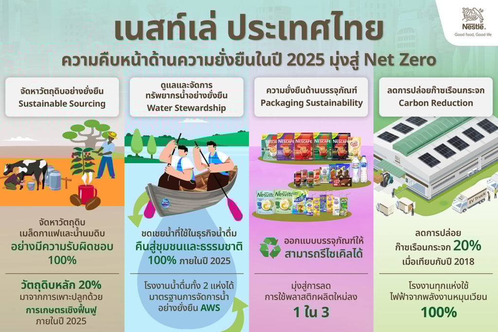 เนสท์เล่ ประเทศไทย ประกาศแผนงาน Net Zero 2050 Roadmap มาตั้งแต่ปี 2021 โดยมี 4 แนวทางที่ชัดเจน