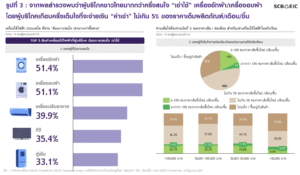 สินค้าที่คนไทยสนใจเช่ามากที่สุดคือ เครื่องใช้ไฟฟ้าขนาดใหญ่ โดย ‘เครื่องซักผ้า’ (51.4%) และ ‘เครื่องอบผ้า’ (51.1%) ติดอันดับสูงสุด รองลงมาคือ เครื่องปรับอากาศ (39.9%) ทีวี (35.4%) และตู้เย็น (33.1%)