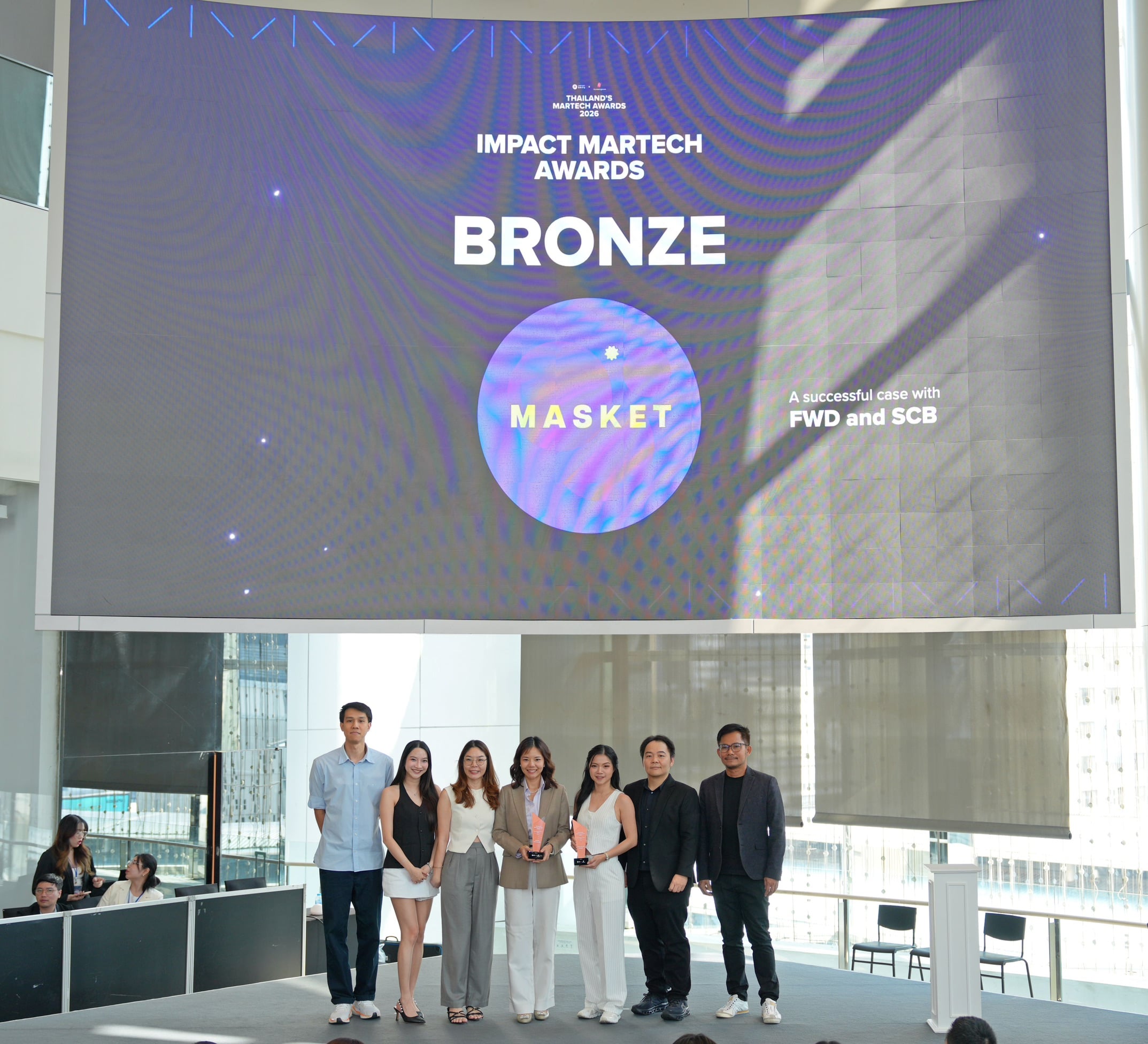 ธนาคารไทยพาณิชย์ (SCB) และ เอฟดับบลิวดี ประกันชีวิต (FWD) ได้รับรางวัลจากเวที Thailand’s MarTech Award 2026 ประเภท Impact Martech Award ในหมวด Data จากแคมเปญการตลาดผลิตภัณฑ์ “ประกันทรัพย์พอร์ตทุกวัย*” ซึ่งมีความน่าสนใจตรงการนำเทคโนโลยีและข้อมูล (Data) มาใช้เจาะกลุ่มเป้าหมายแบบรายบุคคล (Hyper-Personalization)