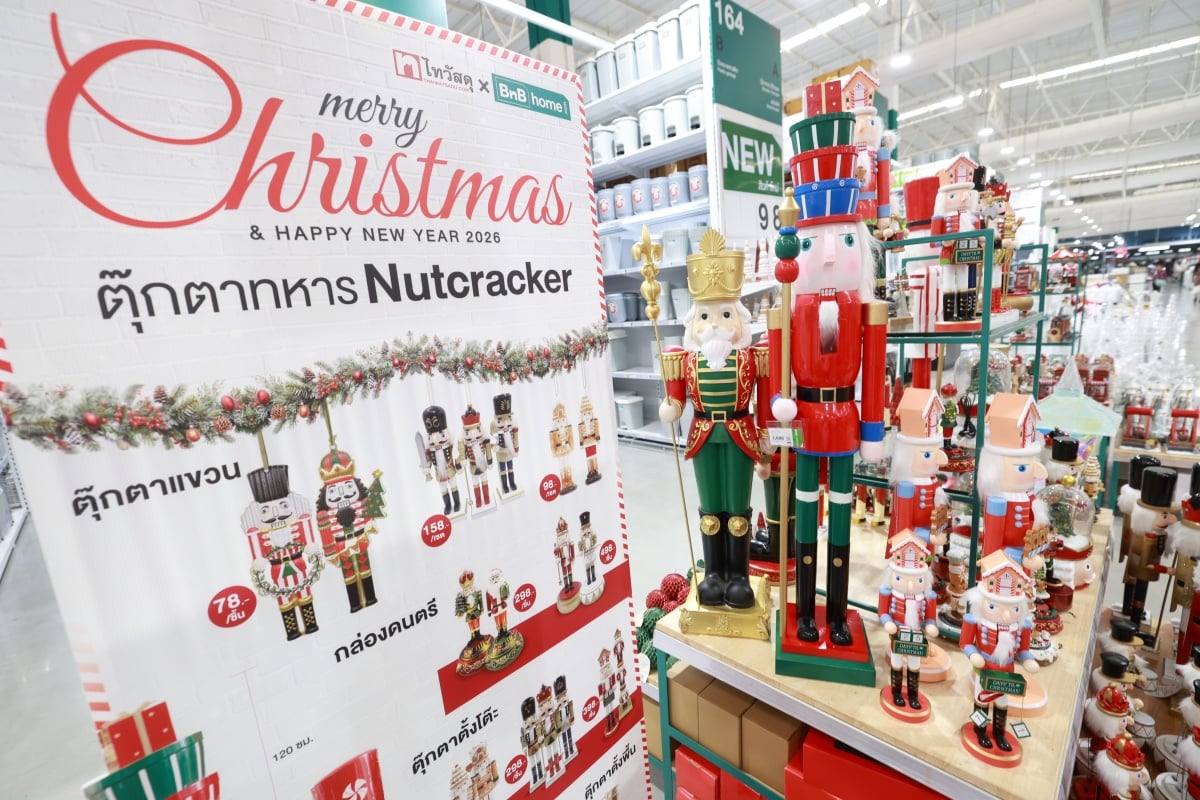 ขณะเดียวกัน ไทวัสดุ และ บีเอ็นบี โฮม ยังได้ขยายความหลากหลายของสินค้าในเทศกาลคริสต์มาสให้ครบครันยิ่งขึ้น ครอบคลุมตั้งแต่หมวด Fresh Cut Tree, Wreath & Garland, Ornament Hanging, LED Lighting, Décor & Gift ไปจนถึง Music Box ภายใต้ธีม “Carnival Nutcracker” ด้วยการนำเข้าสินค้าตกแต่งใหม่กว่า 241 รายการ (SKUs) รวมถึงตุ๊กตาทหาร Nutcracker ที่มีชื่อเสียง มาให้เลือกหลายขนาด รวมเป็นจำนวนทั้งสิ้นกว่า 2,000 รายการ เพื่อตอกย้ำภาพลักษณ์ความเป็น “ศูนย์รวมสินค้าบ้านของคนไทย” ซึ่งหากนึกถึงของตกแต่งคริสต์มาส ต้องมาที่ไทวัสดุ ที่ลูกค้าเชื่อมั่นในคุณภาพ ความครบครัน และบริการที่ตอบโจทย์ทุกความต้องการอย่างแท้จริง