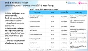 แต่ในทางกลับกัน ทักษะดิจิทัลและทักษะ AI ของคนไทยยังต่ำกว่ามาตรฐานสากลอย่างมีนัยสำคัญ