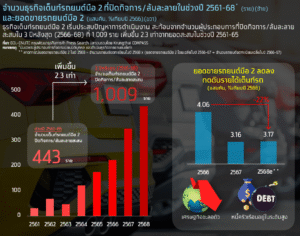 ข้อมูลจาก ‘Krungthai COMPASS’ ระบุว่า ระหว่างปี 2566-2568 มีธุรกิจเต็นท์รถยนต์มือสอง ‘ปิดกิจการ’ หรือ ‘ล้มละลาย’ รวม 1,009 ราย เพิ่มขึ้นกว่า 2.3 เท่าเมื่อเทียบกับช่วงปี 2561-2565 สะท้อนความเปราะบางของตลาดที่กำลังเผชิญแรงกดดันรอบด้าน