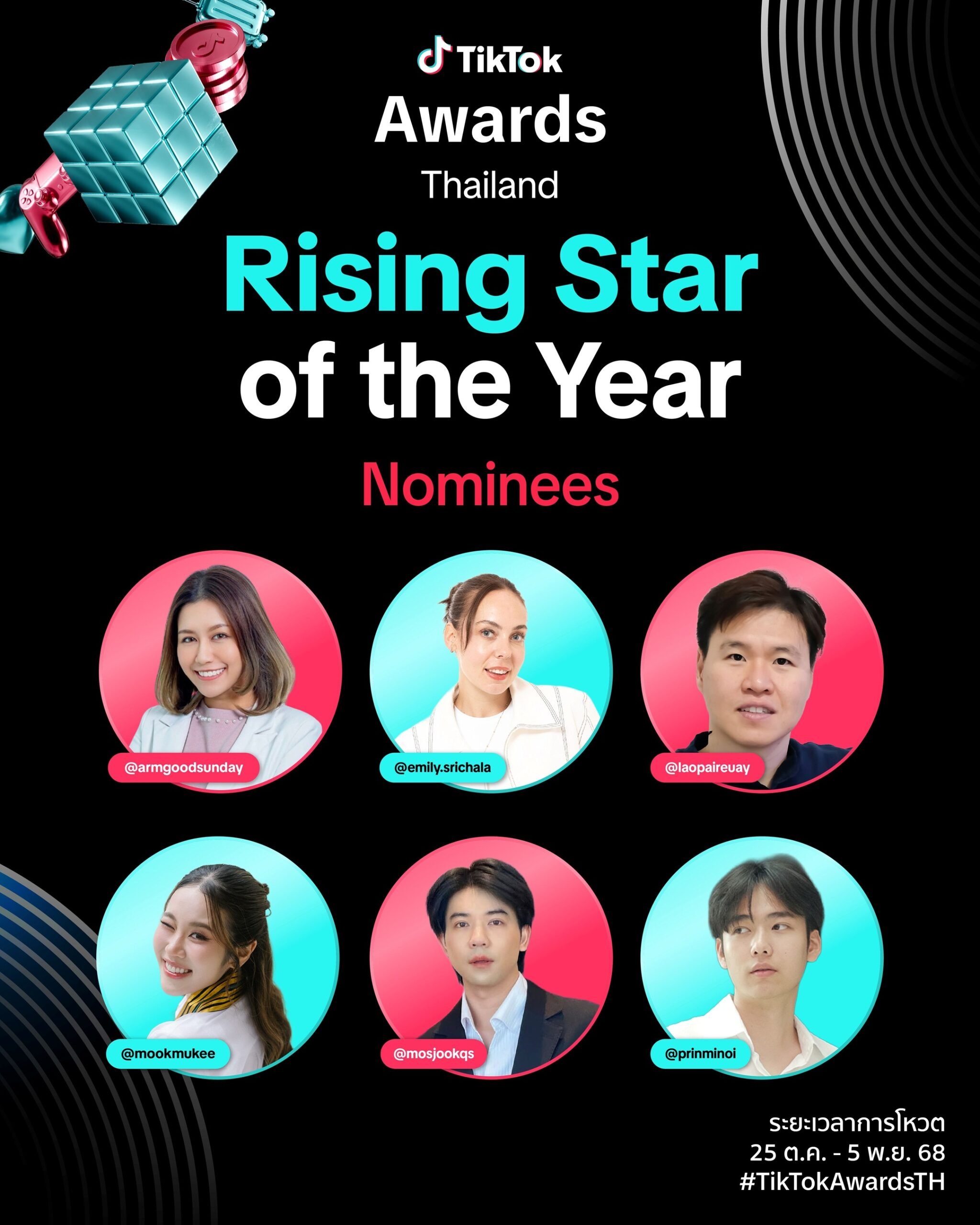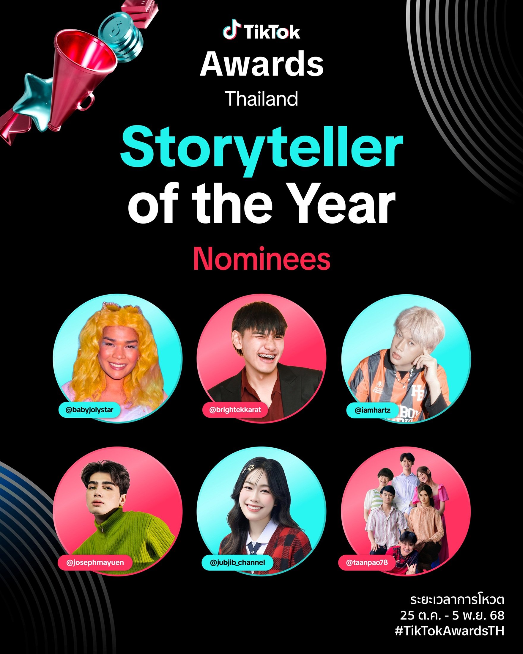 TikTok ประกาศรายชื่อครีเอเตอร์ไทยที่ได้รับการเสนอชื่อเข้าสู่รอบชิงในงาน TikTok Awards 2025 งานประกาศรางวัลสุดยิ่งใหญ่ที่เฉลิมฉลองพลังแห่งครีเอเตอร์ผู้สร้างปรากฏการณ์คอนเทนต์แห่งปี พื้นที่แห่งการสนับสนุนทั้งครีเอเตอร์ชื่อดังและดาวรุ่งหน้าใหม่ให้ได้เฉิดฉาย พร้อมเดินหน้าถ่ายทอดแรงบันดาลใจ เติมเต็มความคิดสร้างสรรค์ และมอบสาระความรู้คู่ความบันเทิงให้กับผู้คนทั่วประเทศ พิเศษกว่าที่เคยกับสถานที่จัดงานแห่งใหม่สุดอลังการ ณ One Bangkok Forum ก้าวเข้าสู่ปีที่ 4 ด้วยคอนเซปต์ “New Era, New Icons” พลังของไอคอนยุคใหม่ผู้สรรสร้างแรงบันดาลใจ เพราะรอบตัวของครีเอเตอร์แต่ละคน รายล้อมไปด้วยพลังงานที่ไม่สิ้นสุด สะท้อนยุคสมัยที่ครีเอเตอร์สามารถยืนหยัดบนโลกที่เปลี่ยนแปลงไป พร้อมคงไว้ซึ่งตัวตนและแนวทางที่ชัดเจน ตอกย้ำเจตจำนงของ TikTok ในการเปิดโอกาสให้ผู้ใช้งานทุกเจเนอเรชันร่วมกันสร้างเทรนด์ ปรากฏการณ์ทางวัฒนธรรม และขับเคลื่อนคอนเทนต์ที่มีคุณค่า จุดแรงบันดาลใจผ่านพลังของครีเอเตอร์ ผลักดันประเทศไทยสู่เศรษฐกิจสร้างสรรค์อย่างเป็นรูปธรรม