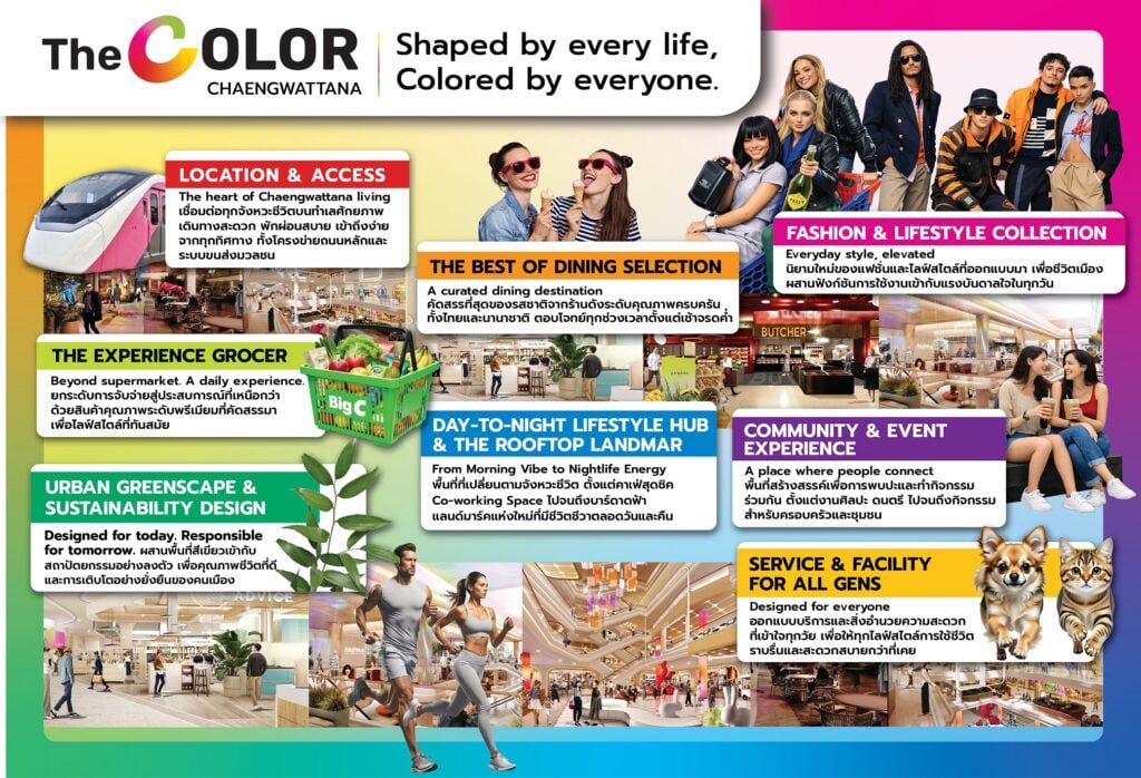 The Color คือชื่อของห้างใหม่ในเครือ Big C ที่แตกต่างกับของเดิม เพราะจะกลายเป็นสิ่งที่เรียกว่า ‘ไลฟ์สไตล์มอลล์’ คือ ห้างที่มีมากกว่าพื้นที่สำหรับ ‘ซื้อของใช้’ กลับบ้าน แต่มีร้านกาแฟ ร้านอาหาร ร้านเสื้อผ้าเครื่องประดับแฟชัน พื้นที่นั่งทำงาน และพื้นที่ทำกิจกรรมด้วย