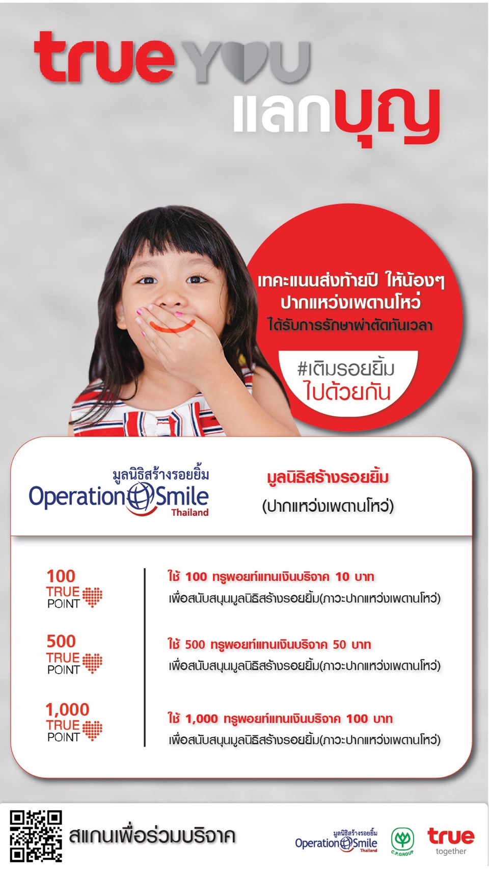 – พิมพ์ 100 เพื่อบริจาค 100 บาท - ใช้ทรูพอยท์ 100 พอยท์ ร่วมบริจาค 10 บาท